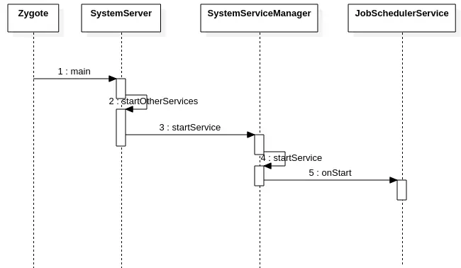 在应用层通过context.getSystemService的方式获取到系统服务的实例对象,而该方法的真正实现则是在ContextImpl中,进入到ContextImpl的getSystemService方法中会发现最后会调用到SystemServiceRegistry中的getSystemService方法中,在该类的getSystemService方法中则会返回JobSchedulerImpl实例对象,因此JobSchedulerService的接口并不会直接提供给用户使用,而是通过JobSchedulerImpl对象间接的供用户使用。所以源码分析需要从JobSchedulerImpl源码入手。
