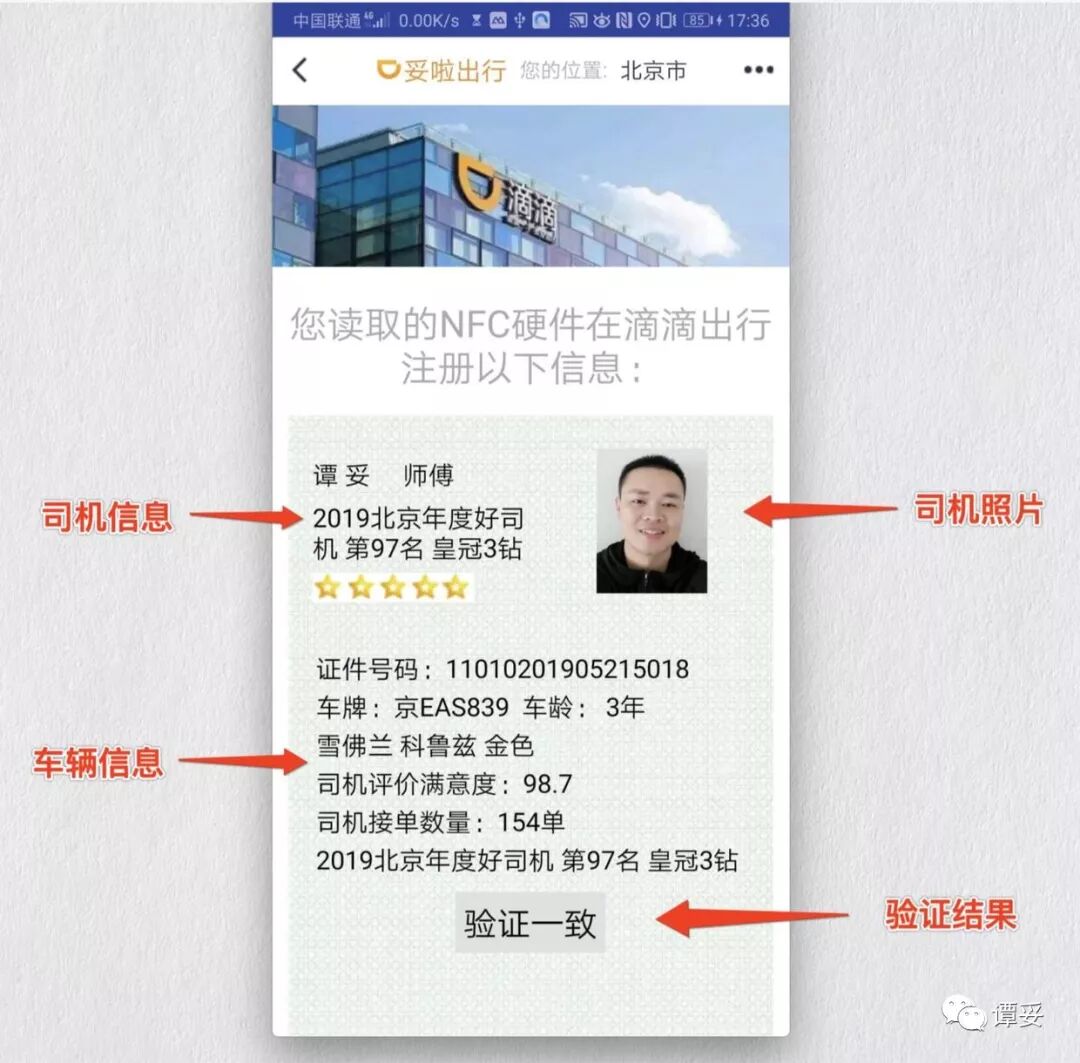 点击右上角的RFID验证入口以后,会提示乘客使用手机背面像刷公交卡那样感应RFID硬件,比如嵌入芯片的司机证件、固定在车上识别器等。