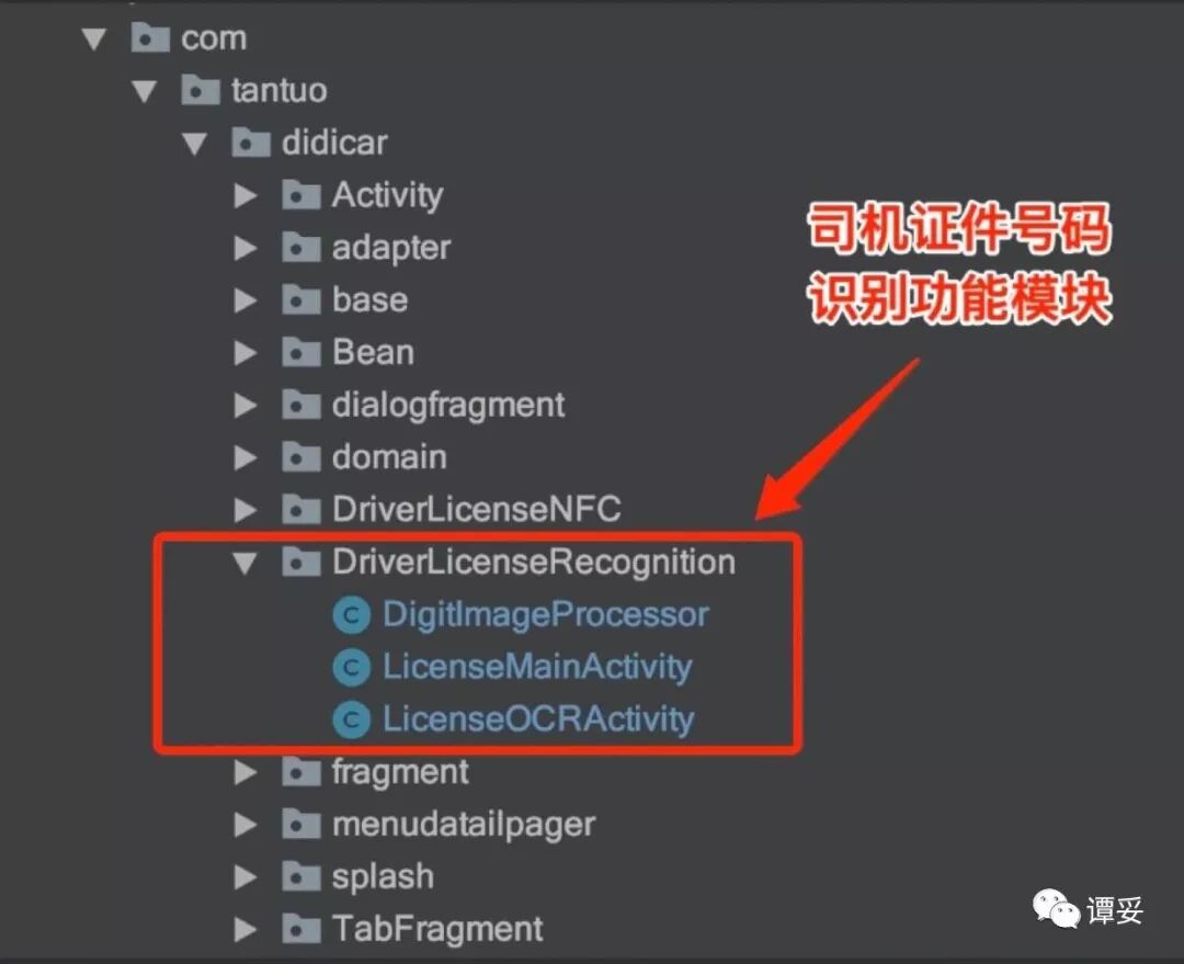 证件号码识别功能的主要代码在com.tantuo.didicar 包下的 DriverLicenseRecognition 模块。