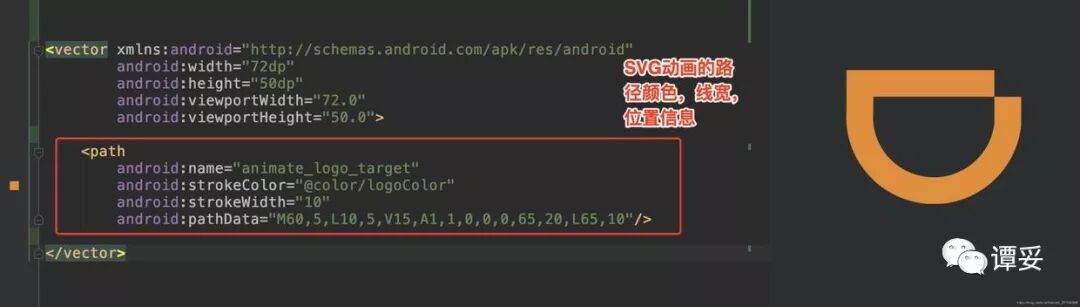 引导界面最初的logo动画是用我自己用SVG矢量动画做的,路径规划描述在 drawable 的splash_logo.xml 文件里: