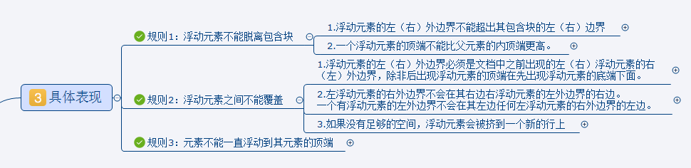 - 如果一个元素浮动了,先向上移动,直到贴靠到父元素的边界,接着,如果是左浮动,就向左移动,直到移动到父元素的左边界,如果是向右浮动,就向右移动,直接移动到父元素的右边界。