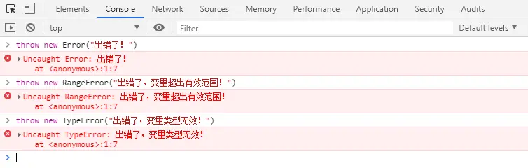 性(错误对象中的方法全是默认的对象方法)。 Error 类型的错误很少见,如果有也是浏览器抛出的;