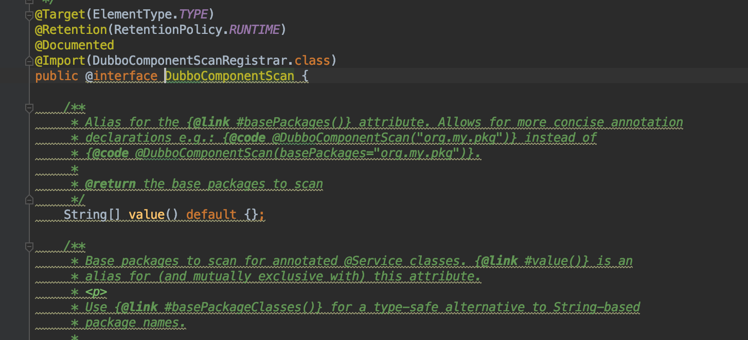 这里通过@Import注解,引入DubboComponentScanRegistrar对象实现ServiceBean的BeanDefinition的Bean的注册.