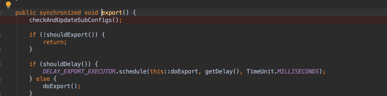 父类中exprot方法中,判断是否应该delay发布, 如果没有配置这个delay参数,则调用