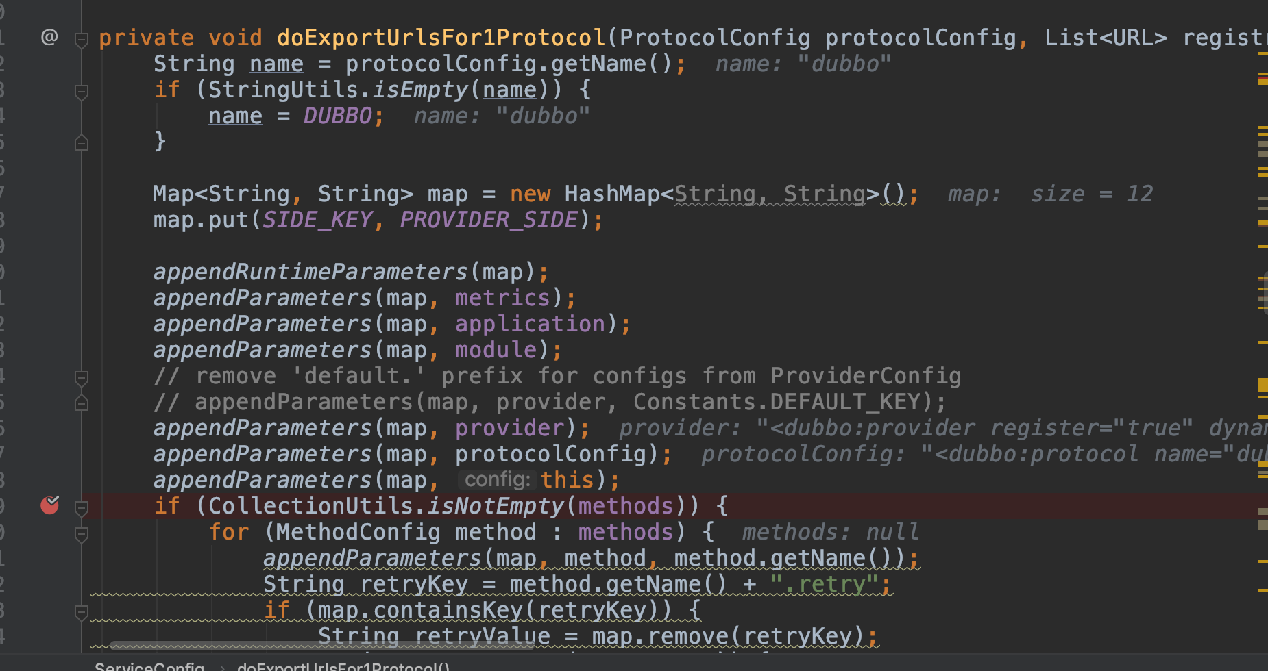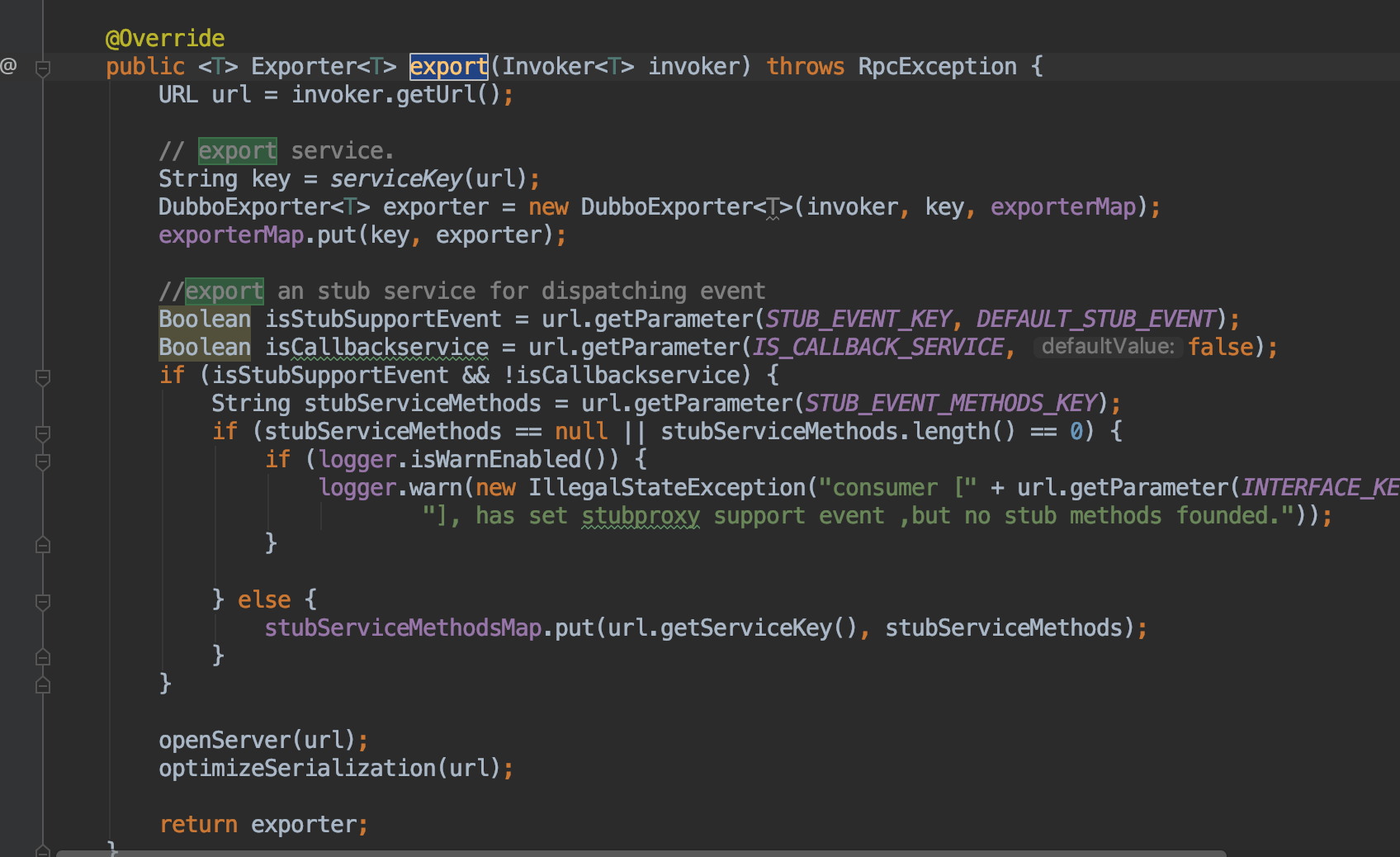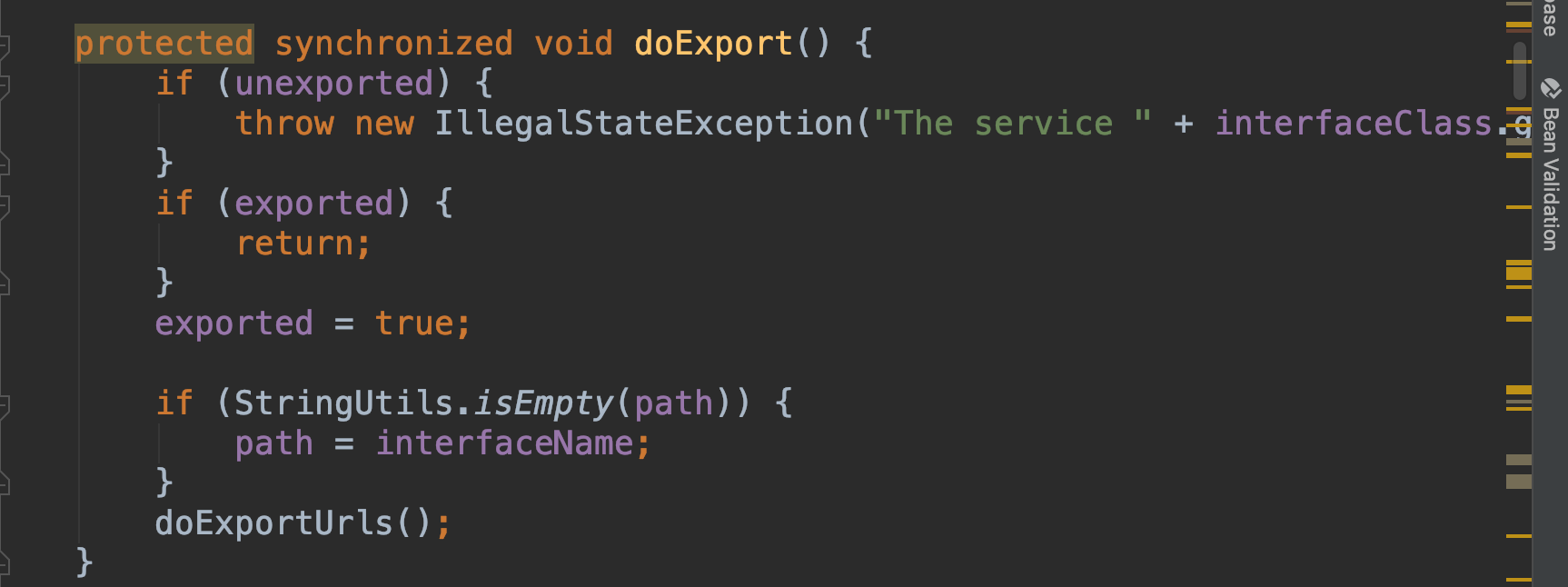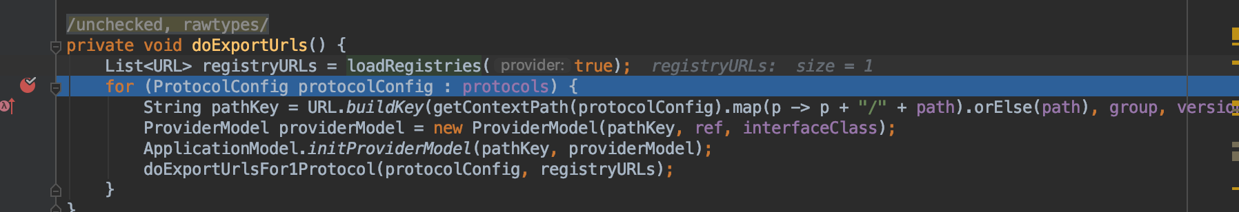 由于doExportUrlsFor1Protocol处理路基太长, 下面是该函数的代码, 从这里看到如果没有