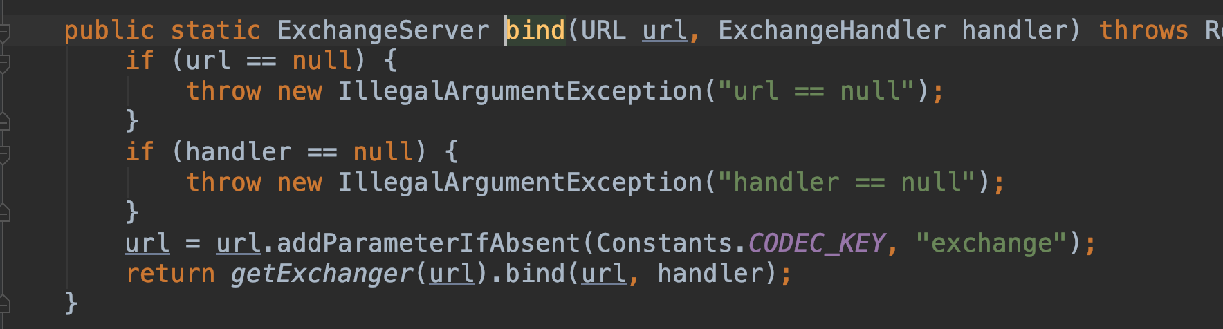 Exchangers调用bind绑定URL和requestHandler,requestHandler就是调用实际提供者对象,