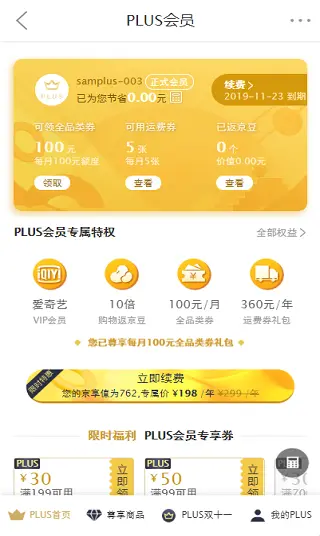 - 京东PLUS会员正式中首页,通过该方案生成的骨架屏效果: