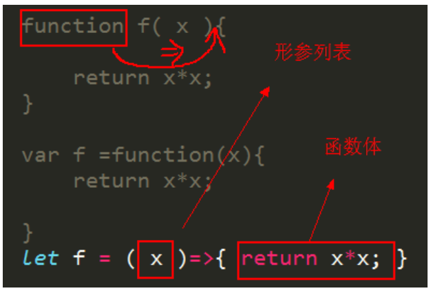 - 改写为:f() => {} ------------ var g = (形参) => {函数体}