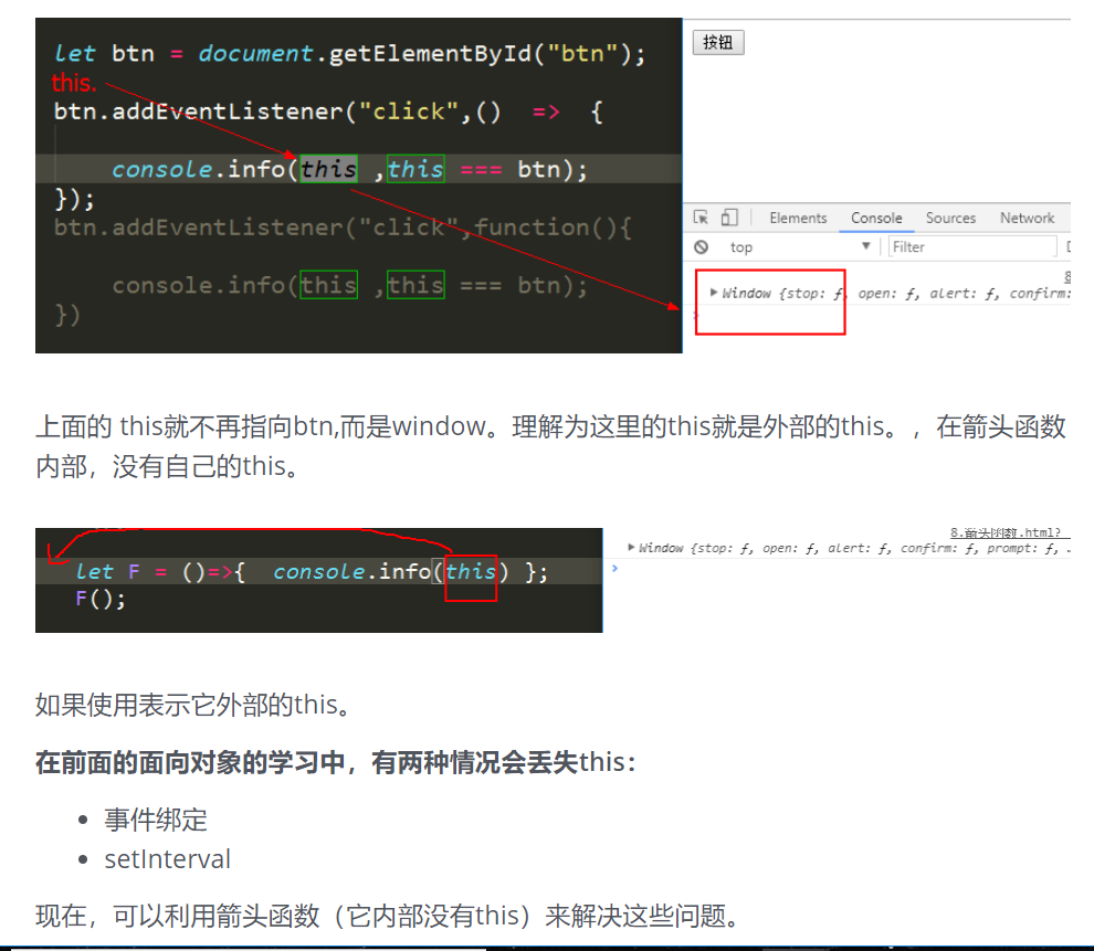 - 箭头函数没有自己的this