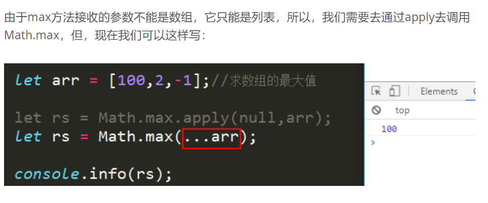 - 代码中的 ... 是拓展运算符,是用来把一个数组“打散”。