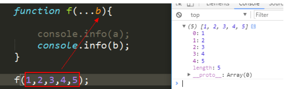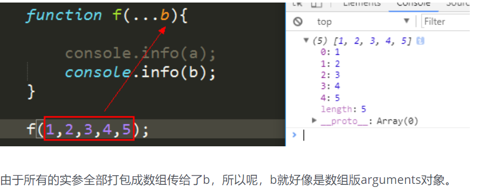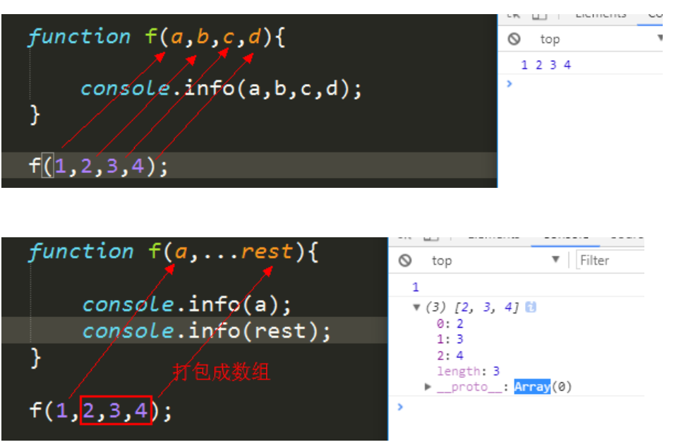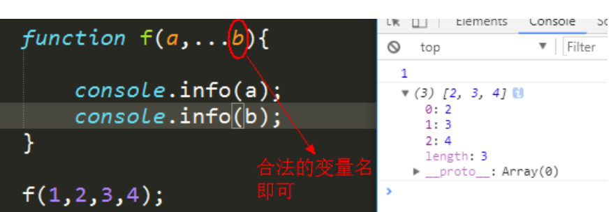 - 注:f中有两个变量,a,rest。 、、、rest是一个数组。、、、且rest只是一个变量名,它是可以改的