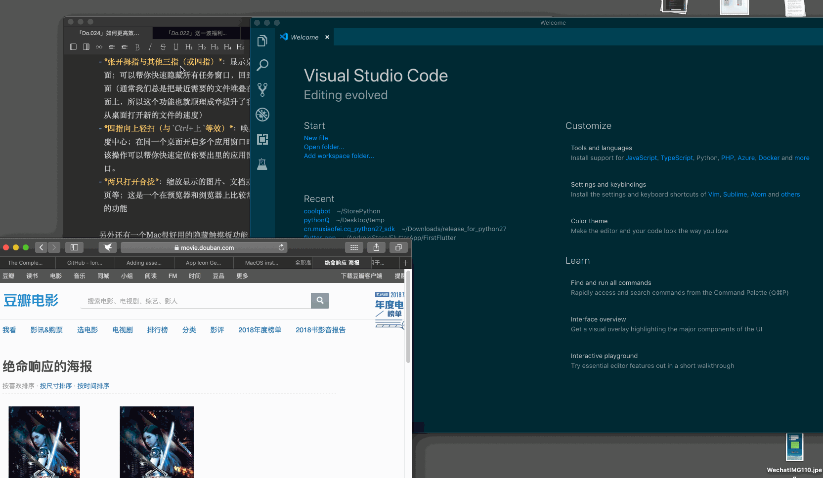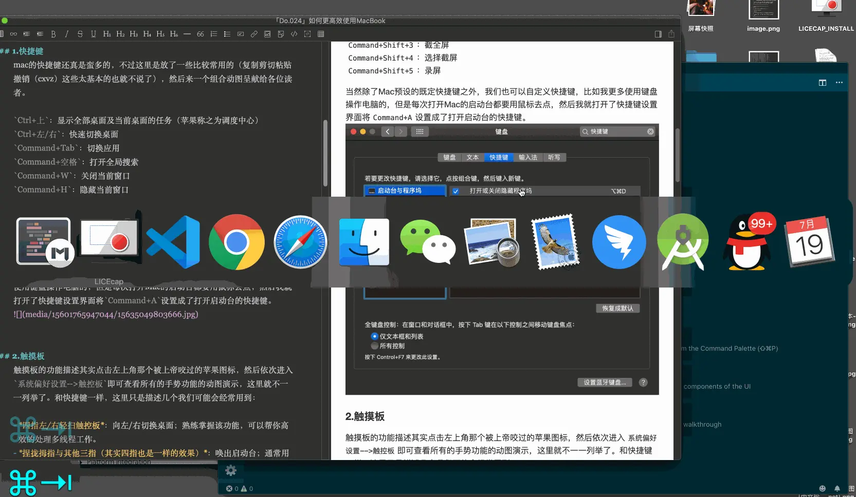mac的快捷键还真是蛮多的,不过这里是放了一些比较常用的(复制剪切粘贴撤销(cxvz)这些太基本的也就不说了),然后来一个组合动图呈献给各位读者(由于gif制作工具的功能限制,动图中无法演示ctrl+上、Ctrl+左/右、Command+Shift+5的效果)。