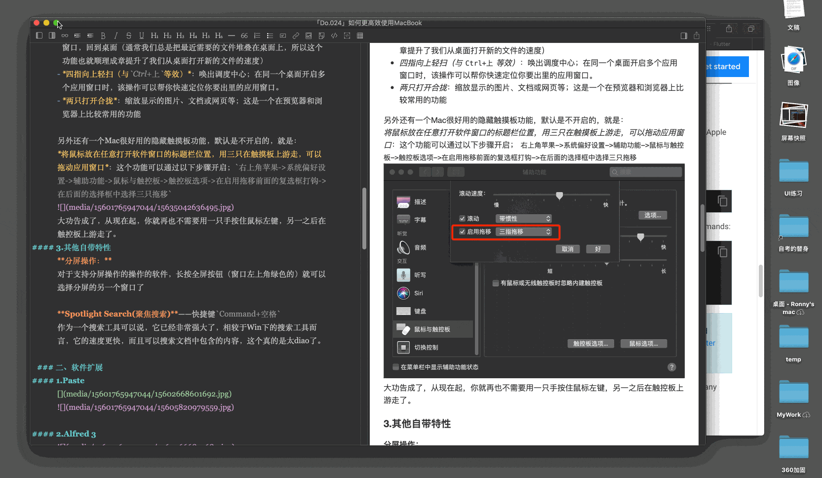 另外还有一个Mac很好用的隐藏触摸板功能,默认是不开启的,就是: