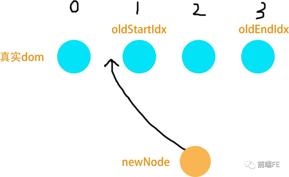 newCh中的节点oldCh里没有, 将新节点插入到oldStartVnode.el 的前边。