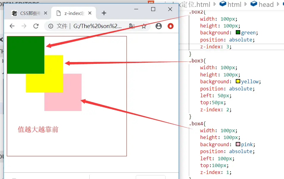 在设置了 z-index的情况下,z-index大的在前