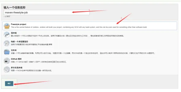 2)填写名称,并点击自由风格项目,最后点击确定,如图所示。