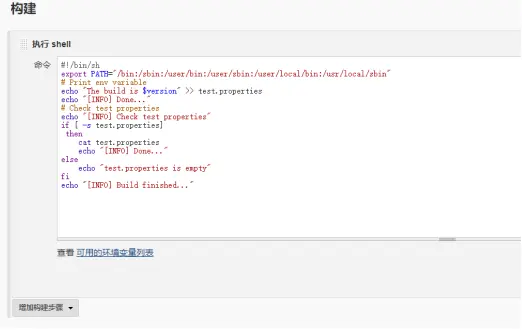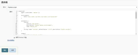 3)将事先准备好的shell代码填入流水线,如图所示。