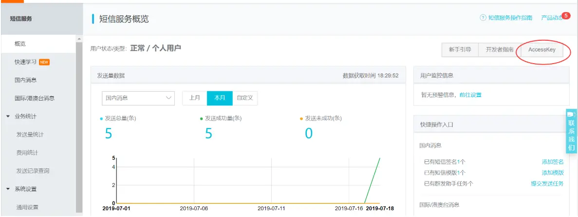 然后我们的先去控制台,等签名和模板都审核通过后就可以直接使用了