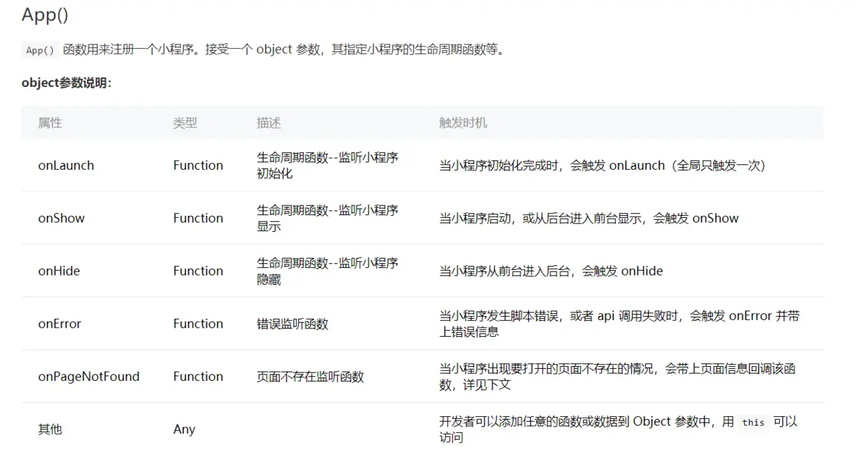 - 官网最靠谱:https://developers.weixin.qq.com/miniprogram/dev/framework/app-service/app.html