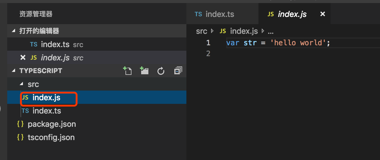 在命令后输入 tsc ./src/index.ts 就自动编译出index.js