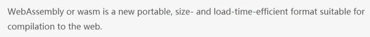 翻译成中文的话,WebAssembly(wasm)就是一个可移植、体积小、加载快并且兼容 Web 的全新格式。