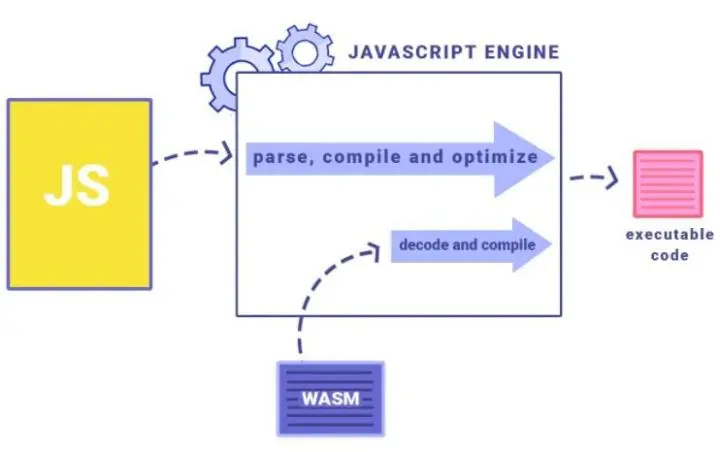 自从有了WebAssembly以来,一直有一股声音说可以取代JavaScript了。他们的观点是传统的解释型语言在执行时免不了要进行词法分析 -> 语法分析 -> 预解析 -> 解释执行等过程,性能太差。但是现代浏览器的JS引擎在进化的过程中引入了许多优化手段如字节码缓存,可以省掉每次解释执行时重新遍历语法树的过程,虚拟机可直接取指 -> 解码 -> 运行。Chrome V8的JIT在运行过程中直接生成并缓存机器码,下次执行时可由计算机直接执行,连解码的过程都省掉了。虽然JavaScript跟C、C++等静态语言相比执行速度还有很大差距,但是大多数Web应用的性能瓶颈已经不是JavaScript语言本身了,反而是网络资源的加载,这一点WebAssembly并无优势。