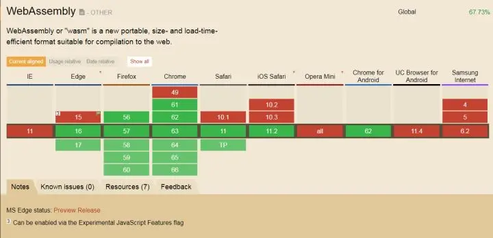 而且,当要开发一个新的功能时,无论你是选择用C、C++、Rust还是Java,开发成本都要比JavaScript高。遇到不兼容WebAssembly的浏览器(见下图),你还得考虑降级为用JavaScript实现,这无疑增加了业务复杂性。