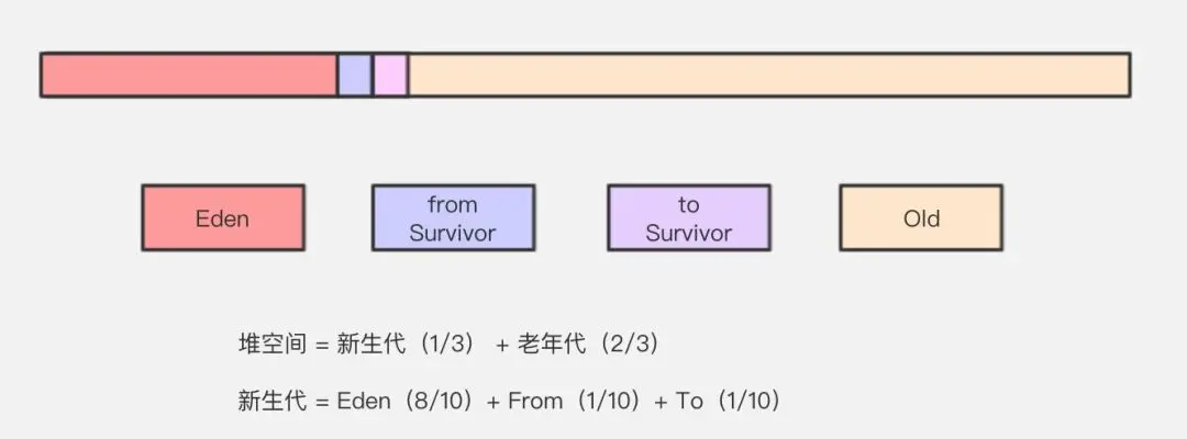 Java 堆主要分为2个区域-年轻代与老年代,其中年轻代又分 Eden 区和 Survivor 区,其中 Survivor 区又分 From 和 To 2个区。可能这时候大家会有疑问,为什么需要 Survivor 区,为什么Survivor 还要分2个区。不着急,我们从头到尾,看看对象到底是怎么来的,而它又是怎么没的。