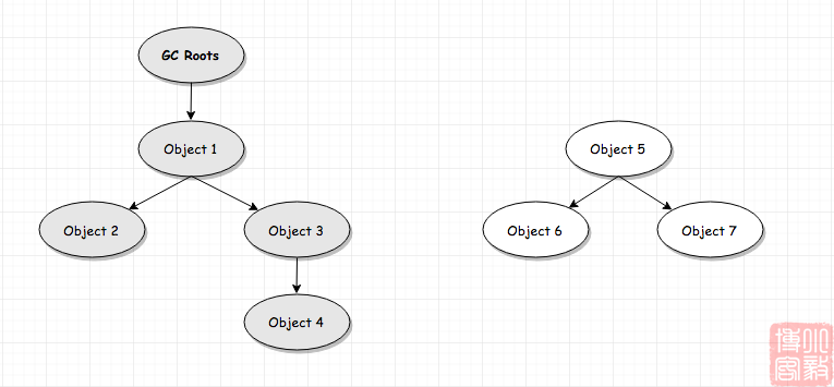 通过一系列的称为 GC Roots 的对象作为起始点,从这些节点开始向下搜索,搜索所走过的路径称为 引用链 ,当一个对象到 GC Roots 没有任何 引用链 相连时,则证明此对象是可回收的。