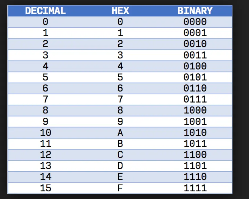因为需要是单数表示数值,如0-9和0-1,因此超过10需要用字母表示,即0-F。
