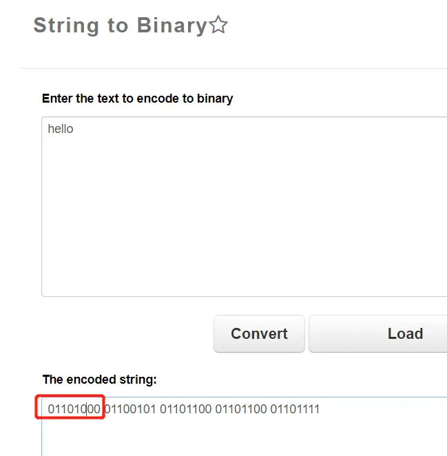 因此hello转换成二进制是: