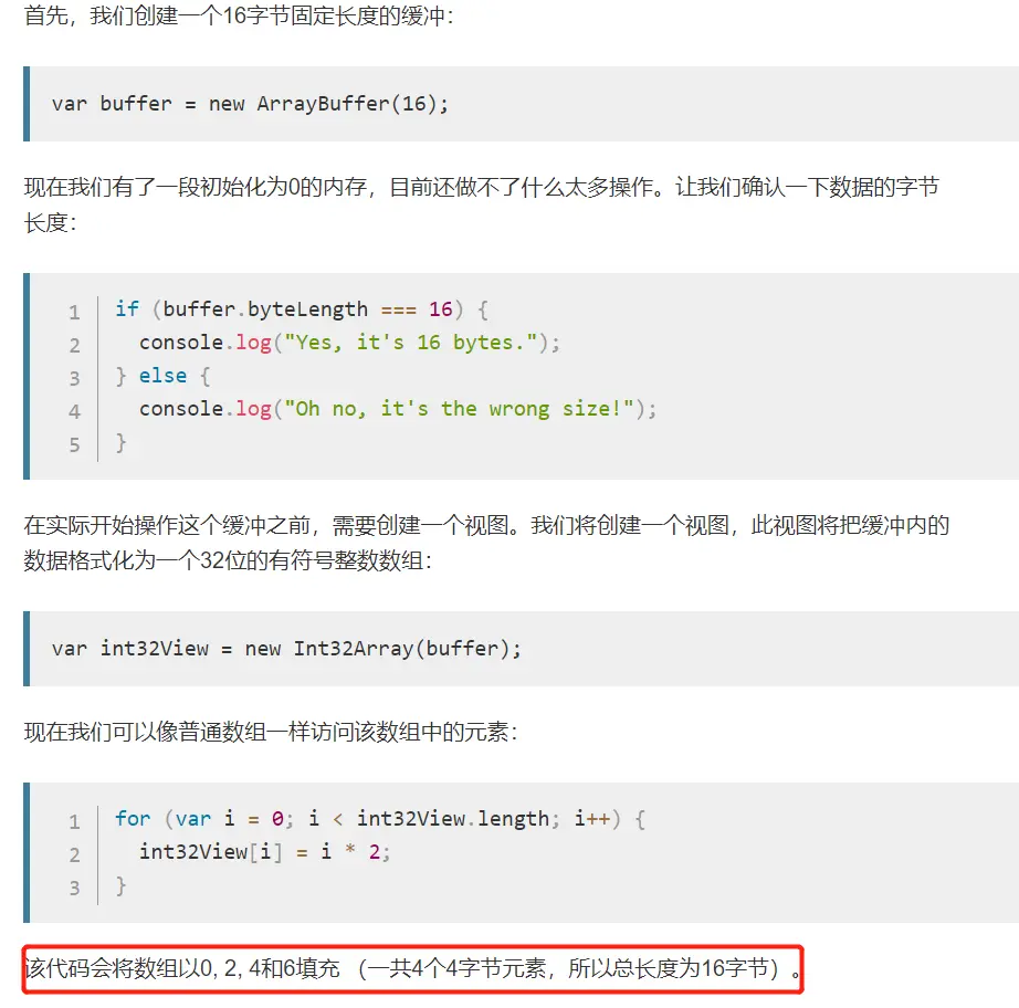 - 先建立内存(Buffer), var buffer = new ArrayBuffer(16); 表示开辟16 Byte的内存空间。