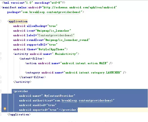 ContentProvider生成后,Android Studio将自动帮助ContentProvider在Manifest中进行注册。