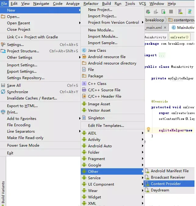 先用Android Studio 创建一个ContentProvider.