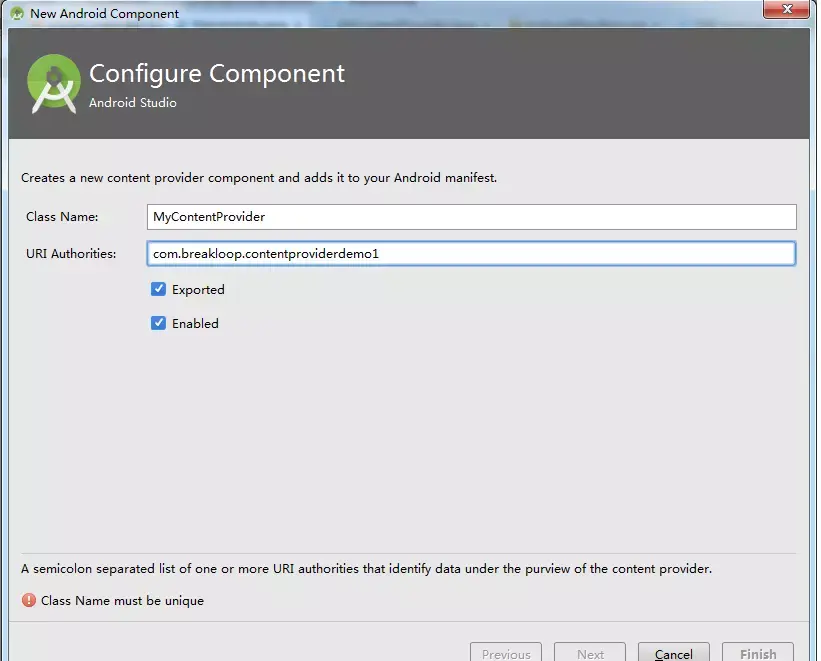 public final static String AUTHORITY="com.breakloop.contentproviderdemo1";