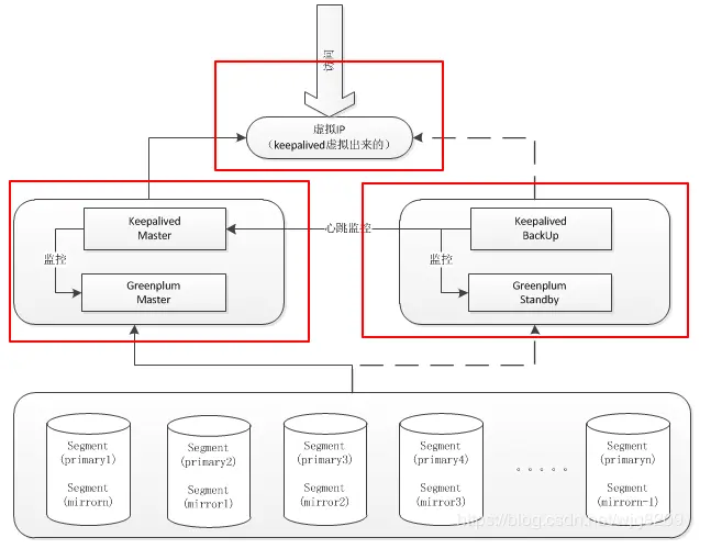 关于网关的高可用,我们没有实际部署,不过可以参看greenplum的高可用方案(Greenplum高可用真的高吗?),结合keepalived来实现网关的高可用,参考架构图: