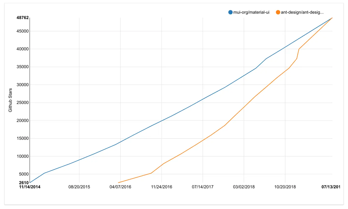 - Ant Design 的 stars 数超过 Material UI,达到 48700+,成为全球最流行的 React 组件库,此处应有掌声!!!