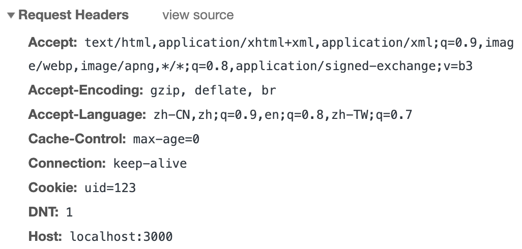 而再次发送该请求时,就会自动带上 Cookie 请求首部字段了。