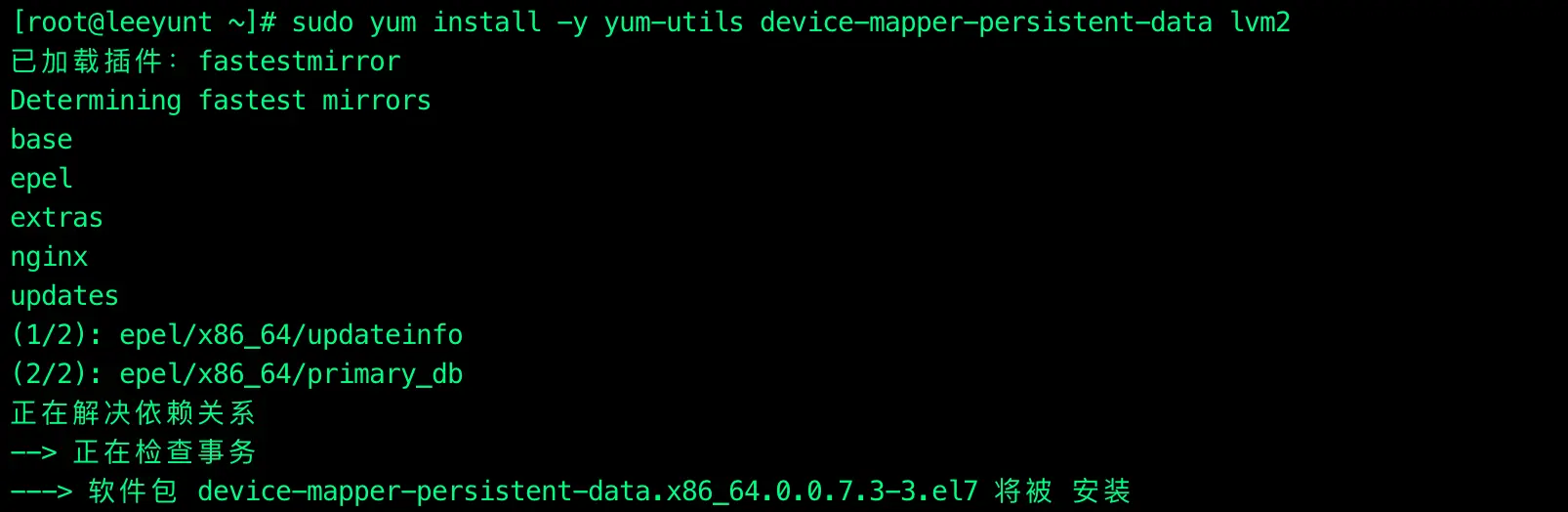 $ sudo yum install -y yum-utils device-mapper-persistent-data lvm2