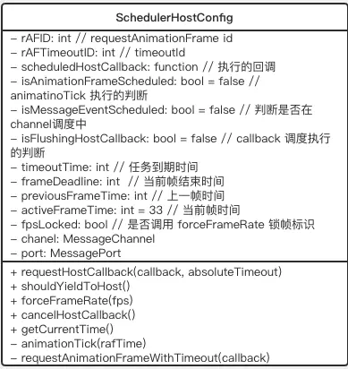 在看过上一节的读者其实会发现,这段和 Scheduler 里的 flushWork 其实有异曲同工之处。首先获取 requestHostCallback 里获得的回调方法,在有空闲时间或者任务超时的时候执行任务,在没时间未超时的情况下重新进行调度,等待下一帧的机会。