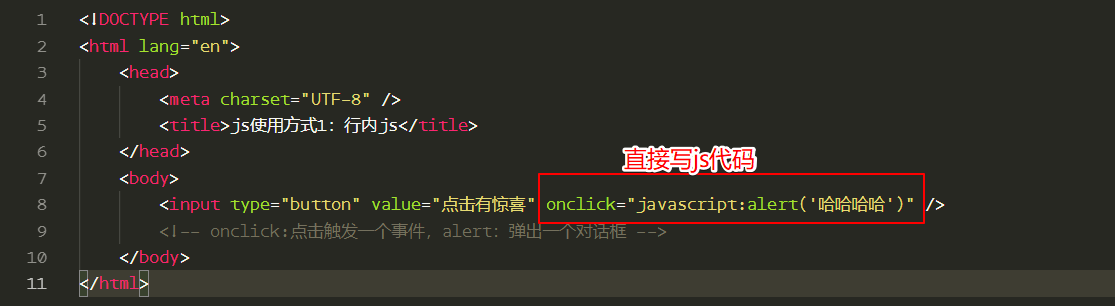 直接将脚本嵌入到 HTML 标记的事件中