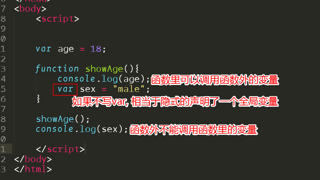 - 函数外的变量, 函数里可以用, 函数里的变量, 函数外不能用