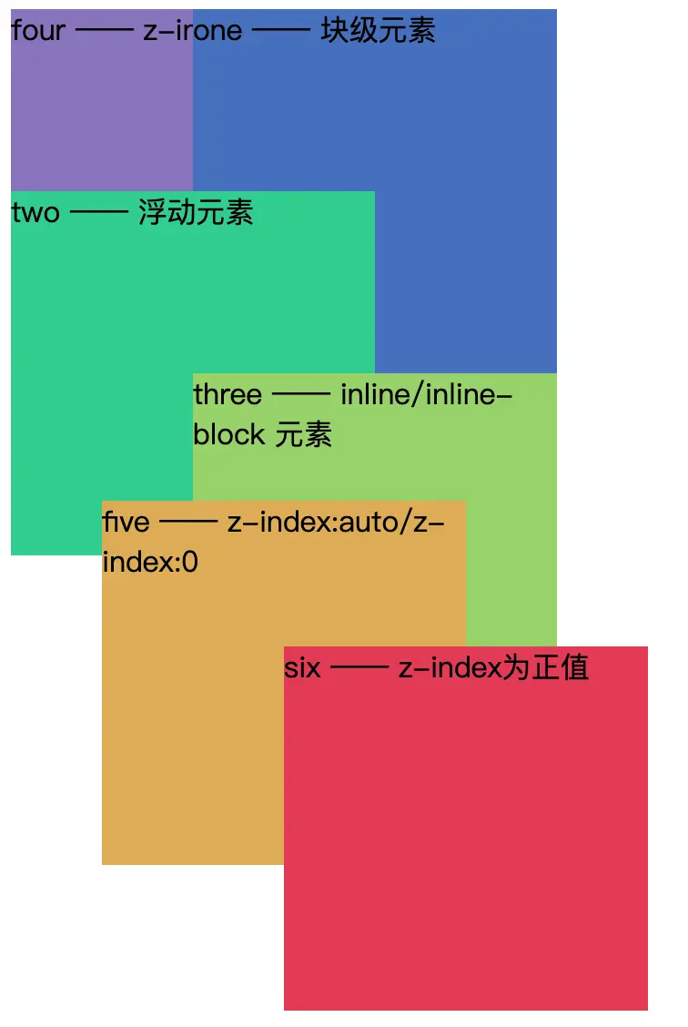 最后,我们再加上 z-idnex 为 0 和正值的盒子。