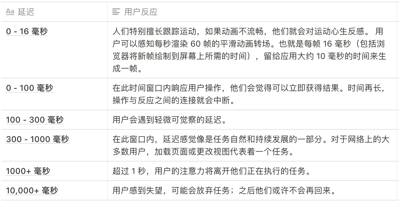 根据谷歌统计的数据,用户在不同时间段内接收到的反馈,可能直接影响到对于网站的用户留存,如下图:
