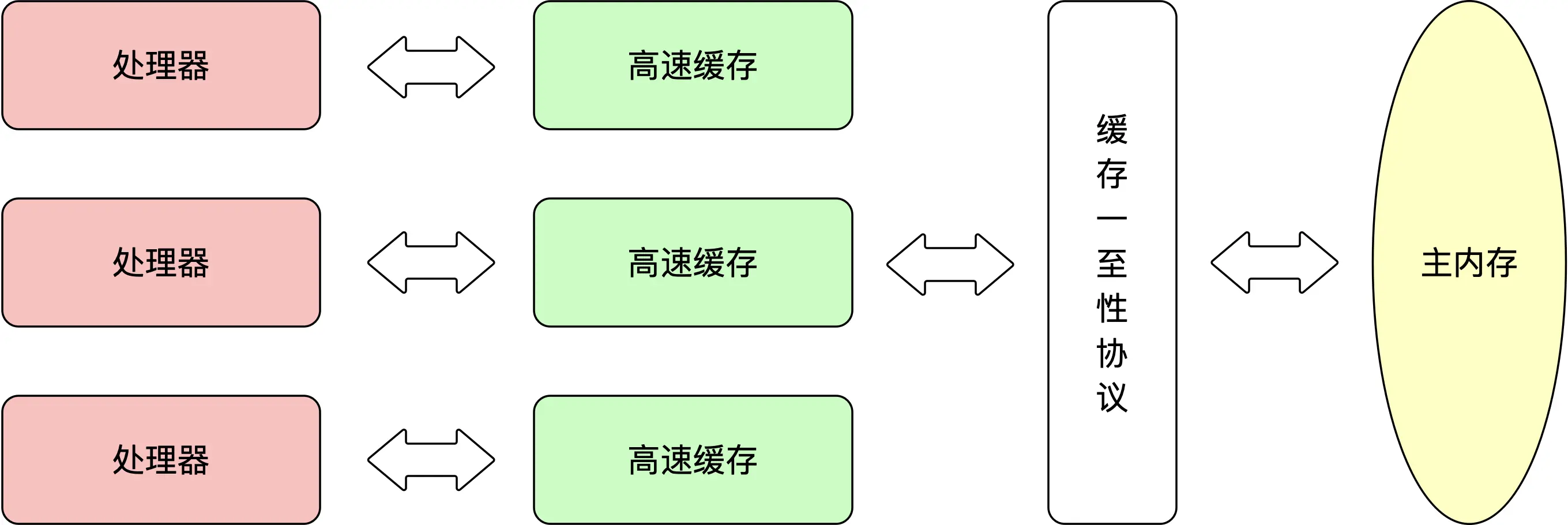 基于高速缓存的存储交互很好的解决了处理器与内存的速度矛盾,但是也为计算机系统带来更高的复杂度,因为它引入了一个新的问题:缓存一致性。在多处理器中,每个处理器都有自己的高速缓存,而它们又共享同一主内存。当多个处理器的运算任务都涉及同一块主内存区域时,将可能导致各自的缓存数据不一致。为了解决一致性的问题,需要各个处理器的访问缓存时都遵循一些协议,在读写时要根据协议来进行操作。
