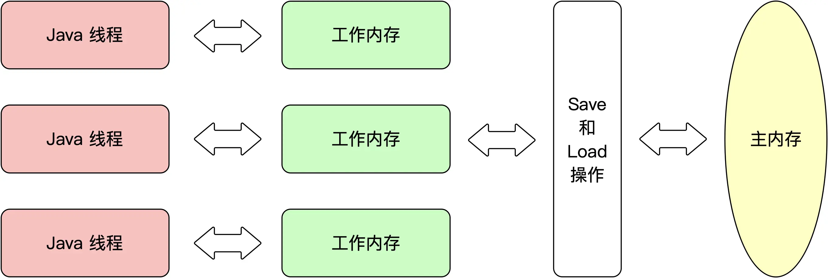 Java 内存模型规定了所有的变量都存储在主内存,每条线程都有自己单独的工作内存,线程的工作内存中保存了被该线程使用到的变量的主内存的副本拷贝,线程对变量的所有操作都必须在工作内存中进行,而不能直接读写主内存,线程间变量值的传递均需要通过主内存来完成。