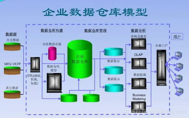 数据仓库这个概念在二十多年前由Bill Inmon提出后,几乎所有的IT厂商都开始介入这个领域,为企业级数据仓库设计非常复杂的体系结构和数据模型,典型的企业级数据应用架构如下: