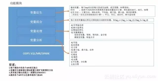 为什么需要这个模块,DTBoost数据模型里面有非常重要的一块就是标签,但是标签怎么产生,哪些标签是有效的标签,这个就至关重要。而生成标签的方式有多种,可以让数据开发人员,根据业务同学的定义,通过SQL或着MR去一一实现,这个也是不可避免的。但是经过对业务需求的分析,你会发现有一部分计算逻辑是非常通用的,为此DTBoost里面可以为客户提供这部分功能,来解决企业内30-50%的标签加工需求,让业务人员自己就可以实现通用方法的标签加工。同时标签工厂能够对用户屏蔽底层之间的表联接逻辑,用户只需要知道所用的标签含义即可。当在某个时间段内同时有多个标签进行生成、处理、分析的时候,标签工厂可以自动找出这些处理的共同依赖、同一计算等,节省计算资源,避免某些热门物理表被多次全盘扫描。现阶段规划的功能如下: