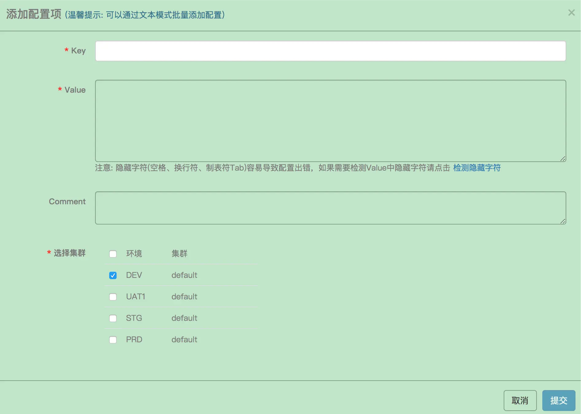 配置项的新增与修改与配置文件略有不同。